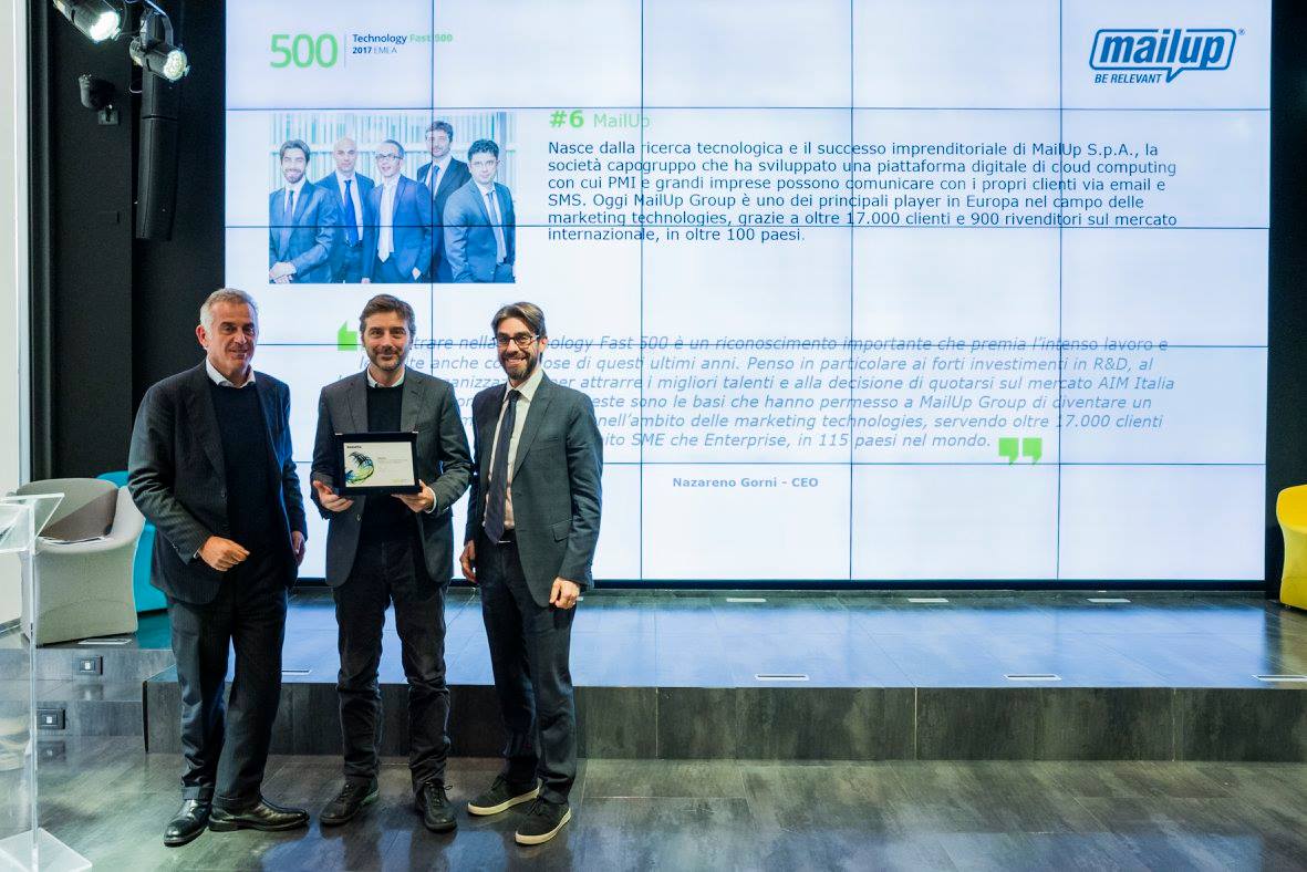 In the picture: MailUp Group CEO Nazzareno Gorni and MailUp General Manager Luca Azzali (center and right), recipients of the accolade from Deloitte.