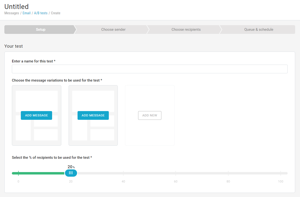 To set up the experiment, click Messages > Email > A/B tests > New A/B test, and pick the messages that you’d like to test. Important: select Best click-through rate as the test metric.