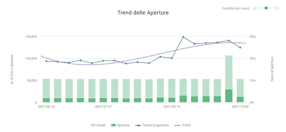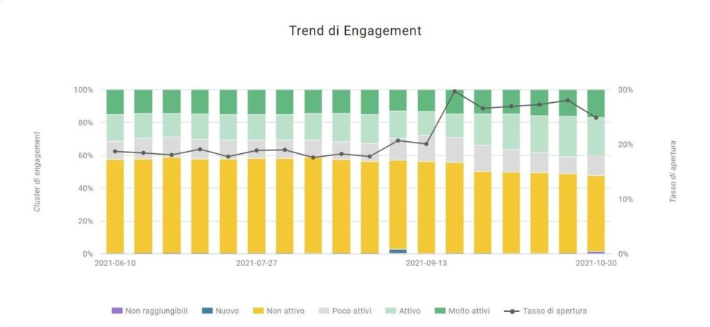 Overall, however, the number of MailUp customers impacted by MPP is very small: only about 30 customers recorded more than 20% of “non-real” opening rates. Further, just a few of these 30 customers are showing significant impact from their statistics.