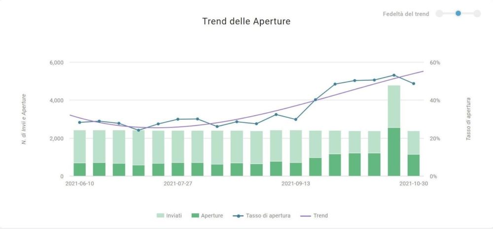 We monitored the possible impact of Apple’s Mail Privacy Protection by conducting various analyses to grasp the extent of this change on data tracking activities. Daily and overall sending volumes from the MailUp customer base served as a reference for us.