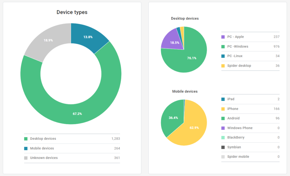 Go to the List overview > Devices section to graphically view the composition of the database of your reference list (e.g. the MailUp Newsletter list) filtered according to the device used.