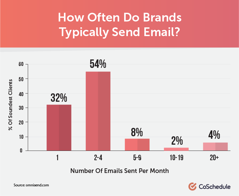 And CoSchedule’s roundup of business email marketing stats says 54% of brands descend between two and four emails per month.
