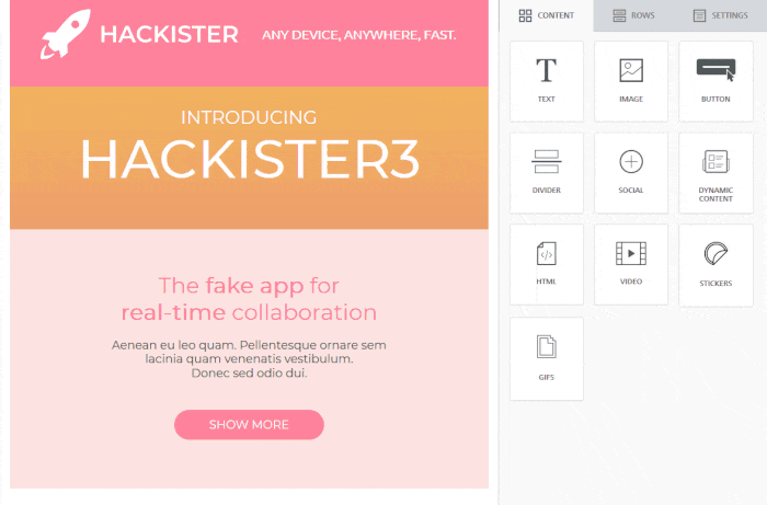 Use the BEE editor to add these animated elements to your emails. It’s quick, easy, and doesn’t require a special skillset. Just drag the sticker and GIF content block into your message template, then place it wherever you’d like.
