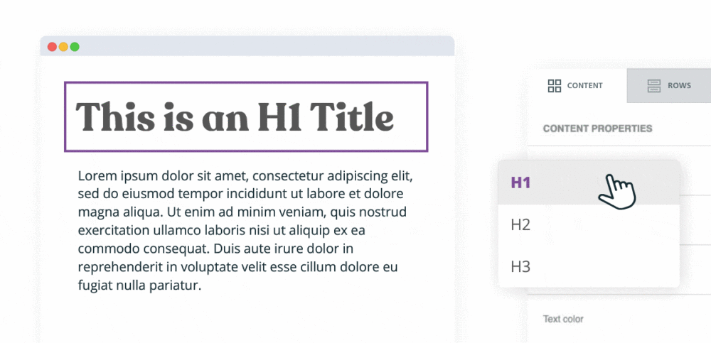 - titles with the new letter spacing function and the option to automatically insert the H1, H2, and H3 title tags for greater flexibility and accessibility when it comes to email and landing page design.