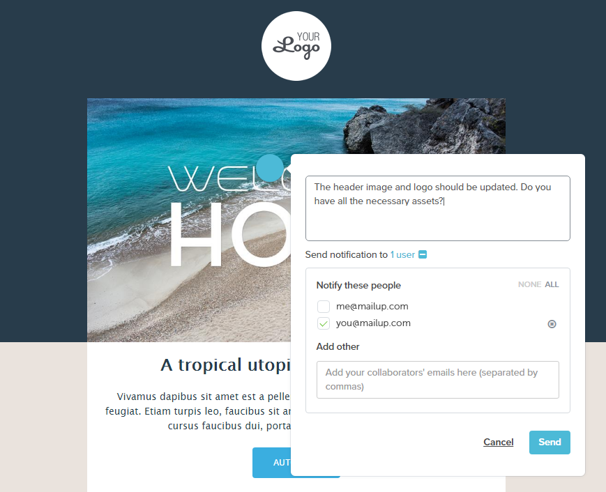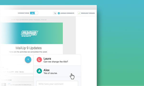 Thanks to Collaboration, MailUp users now have an efficient and friendly way to ask for feedback on an email campaign, collaborate with all the stakeholders that need to be involved, and send a message with much greater peace of mind.