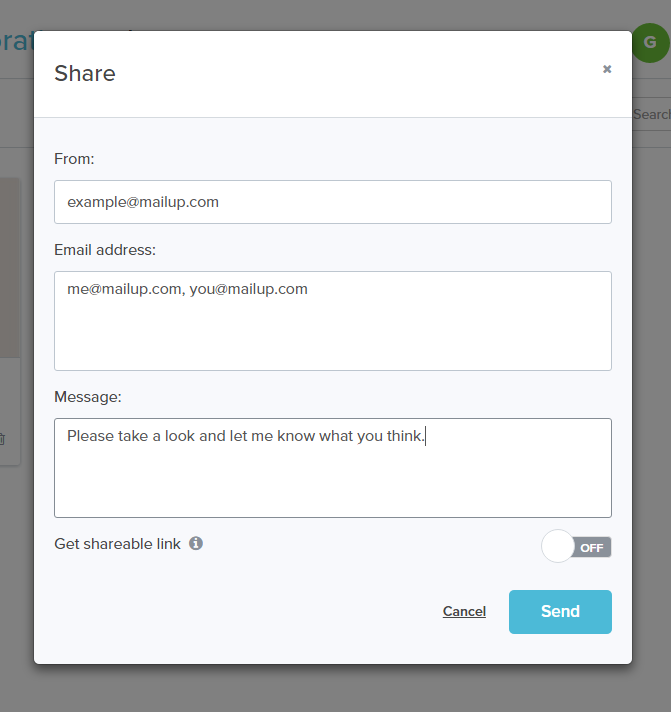 When working on a message, MailUp users can now click on “Collaborate” from a number of locations.