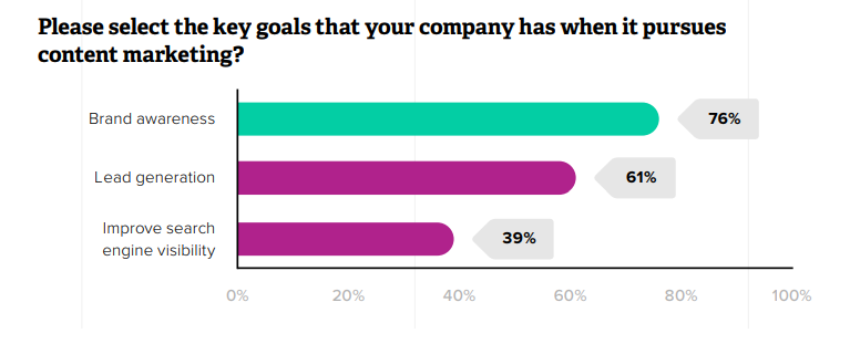 The Zazzle Media study reveals that over three-quarters of companies see brand awareness as the main goal of their Content Marketing strategies. What about second place? Lead generation.
