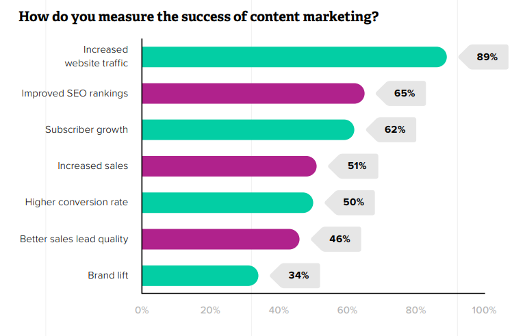 Looking at the “goals” from another point of view, we find that most companies (89%) take as a reference the metric of site traffic, followed by SEO indexing performance (65%).