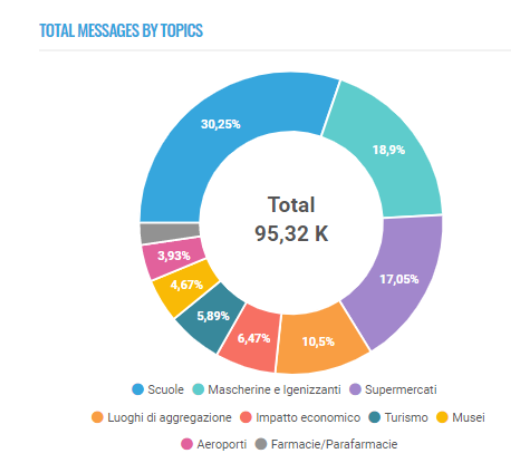 We understand how the three most discussed topics are those with the greatest impact on people’s daily lives (school, masks, supermarkets); on the contrary, the issues with a lower impact on everyday life (the consequences on the economy and tourism) are more peripheral.