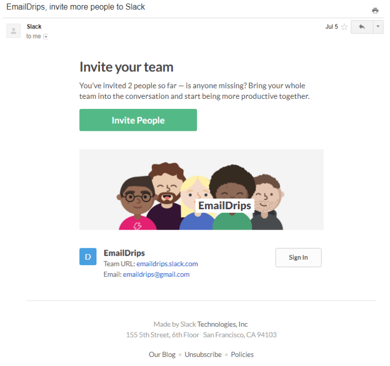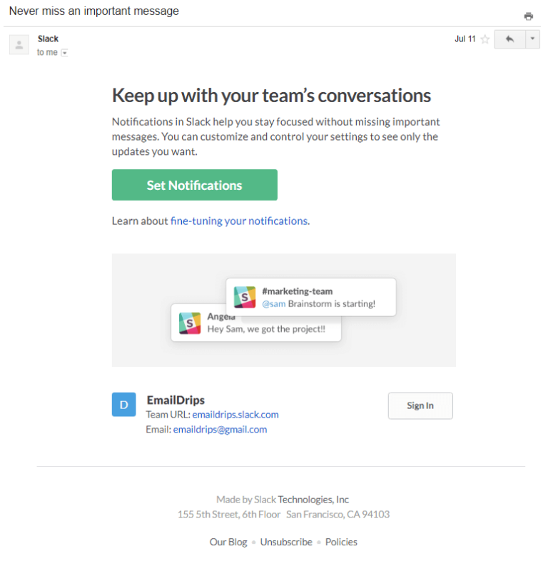 For example, from the moment of registration onwards, Slack guides the new user through the service’s features (the app, the ability to invite people, set up notifications, etc.)
