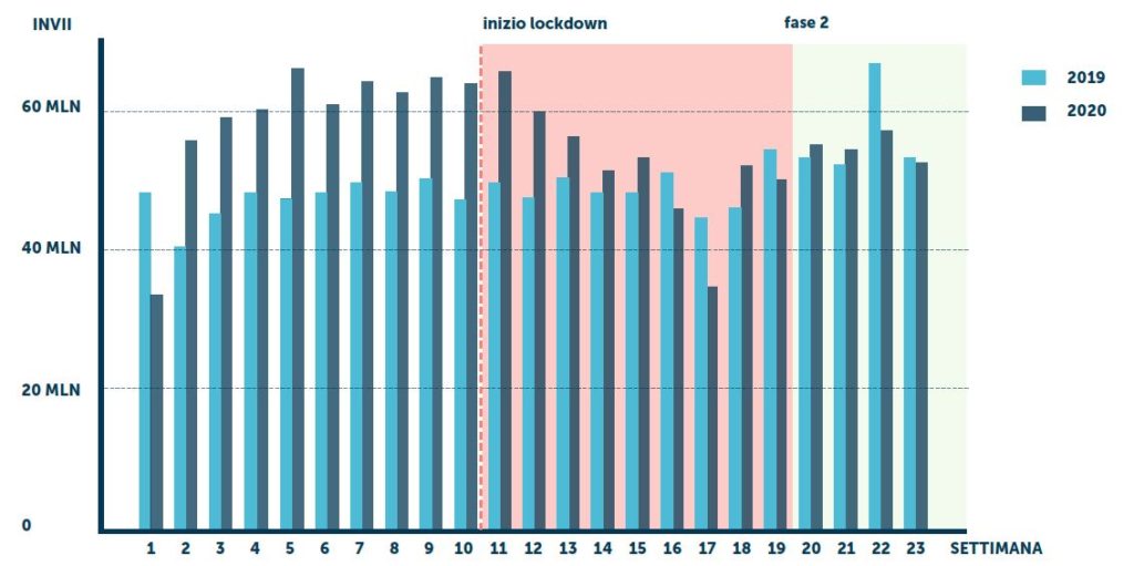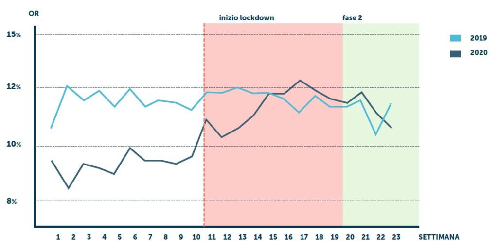 Certainly, the decline is due to the closure of many companies surveyed and, partially, to the initial challenges of reorganizing activities in an unprecedented emergency phase. Similarly, the readjustment from week 18 onwards is due to the fact that companies started getting ready for what is known as phase 2 and resumed their work activities.