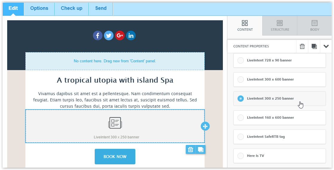 How to create a newsletter containing LiveIntent advertising, with BEE