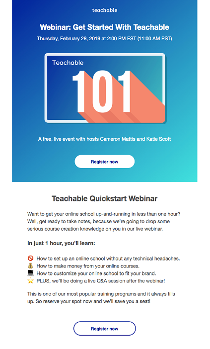 In additionto providing useful information about the product, the goal is to increase theperception of the company as reliable andavailable to meet customers’ needs.Here’s an example from Teachable…