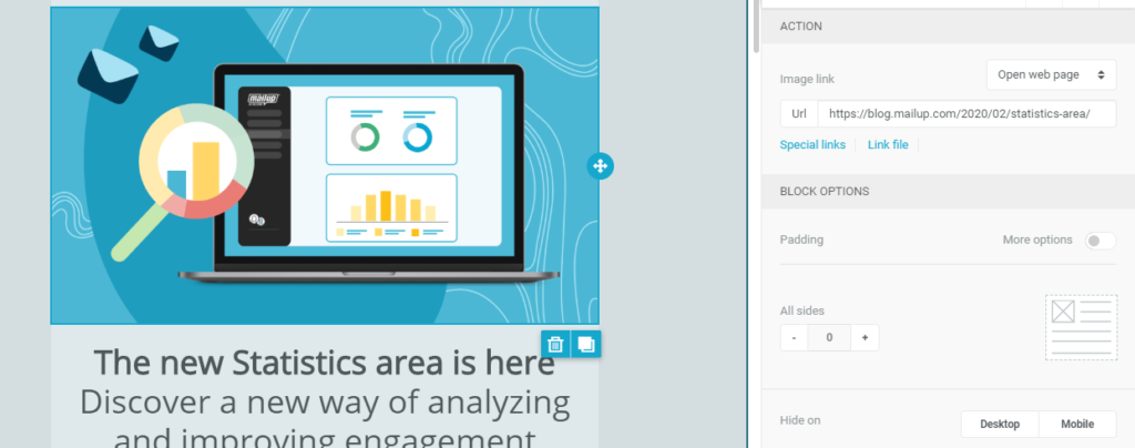 Here’s a tiny yet great trick in improving mobile use: a function for excluding some email modules from being viewed on a mobile device while they stay visible on a desktop. Here’s how to do it with the MailUp platform: