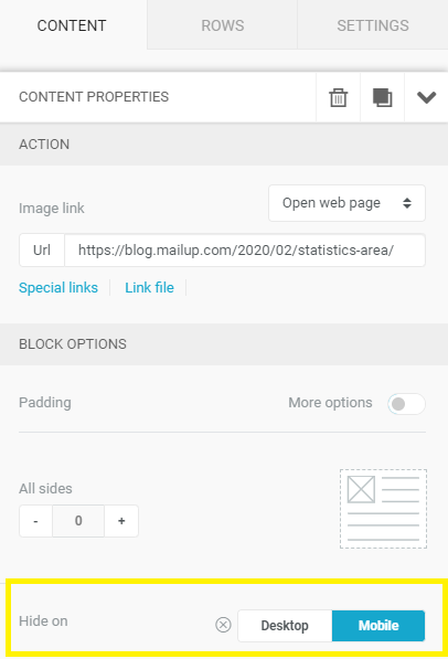This way, activated items will not display on mobile devices, thus reducing the email’s vertical length.