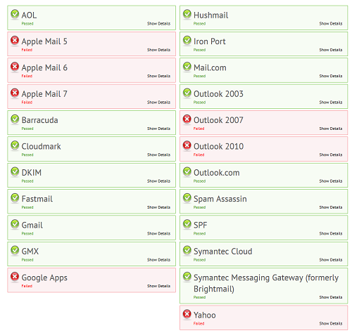 Here too, views differ: several studies agree on limiting email weight to 50–70 KB while others, more tolerant, raise the alert threshold to 125 KB. An Email on Acid study is the most reliable. It tested a series of HTML emails on 23 of the most popular spam filters, whose weight ranges from 15 to 650 KB.