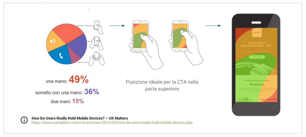 This best practice meets thepeculiar way of interacting with a smartphone with just one hand, particularly the thumb, which acts on the screen whileother fingers support the device.