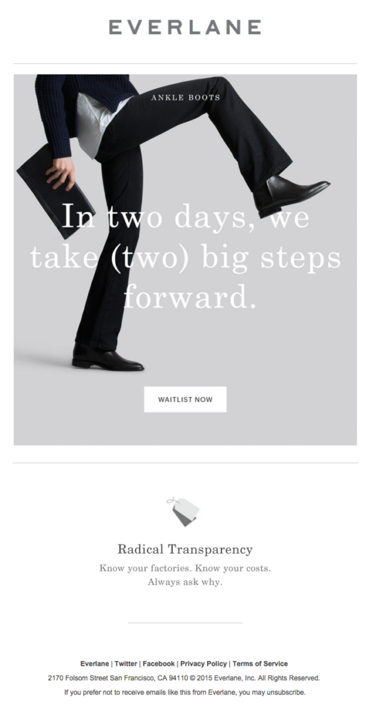 Clothing company Everlane often uses this basic format in announcement emails: