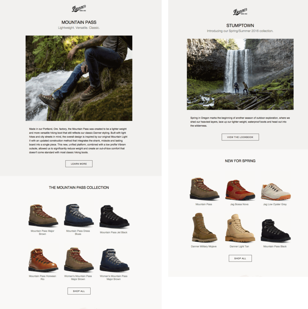 Danner, for instance, uses a simple template to introduce and remind subscribers about featured boot collections: