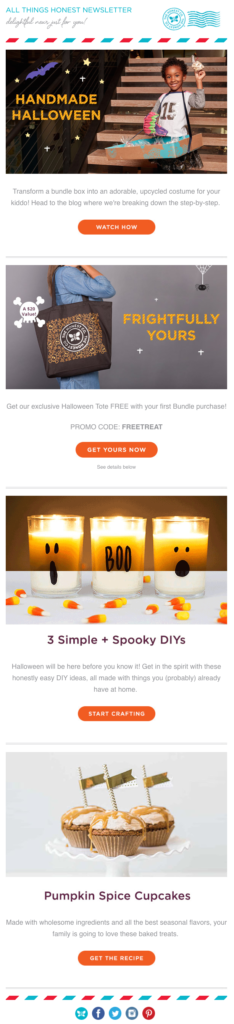 Of the Halloween email campaigns seen so far, this festive email from The Honest Company gets a lot of things right.