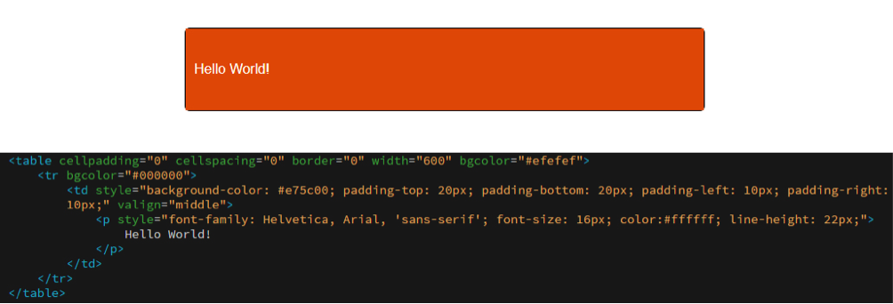 - Finally, apply an orange background (background-color: #e75c00) to the cell containing the text Hello World!