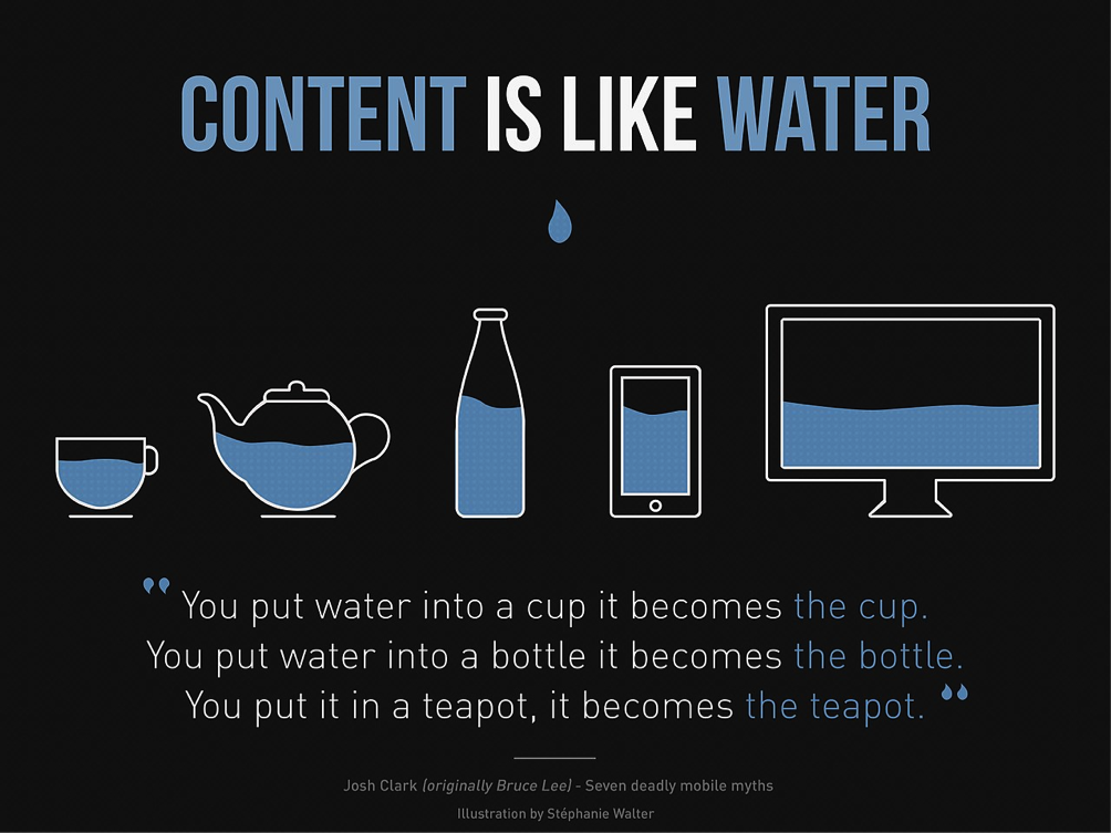 In summary – and paraphrasing Bruce Lee – the content is like water: if you put water in a cup, it becomes the cup; if you put water in a bottle, it becomes the bottle; if you put water in a teapot, it becomes the teapot.