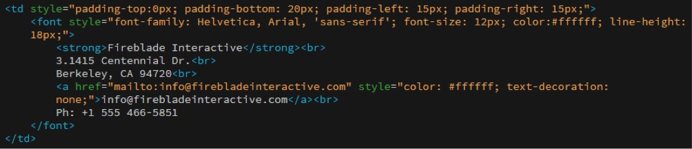 The critical point should now be clearer: the HTML and CSS property definitions can pile up on one another. In fact, when reworking or varying the same email model, the code can often get bogged by redundant properties that perform the same function.