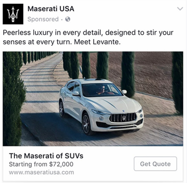 A good example of a company who used Facebook lead ads to generate lead is Maserati – a luxury automaker. They created a Facebook leads ads to sell their newly released Levante SUV. The Facebook Lead ads reached 4 million people on Facebook and Instagram.