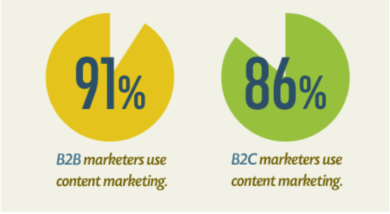 Content marketing is growing by leaps and bounds. In fact, it is predicted to grow to a $300 billion industry by 2019. Content marketing is a good strategy for generating leads both for the B2B and B2C niches. This is why 91% B2B marketers use content marketing while 86% B2C marketers use content marketing.