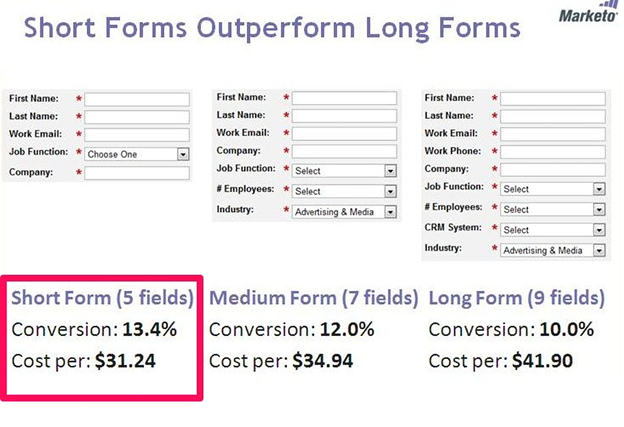 Make sure you use fewer fields in your forms. Too much fields take time to fill and this can discourage users from signing up. Marketing experiments carried out tests on three landing page form having nine, seven and five fields. The form with five fields outperformed the rest.