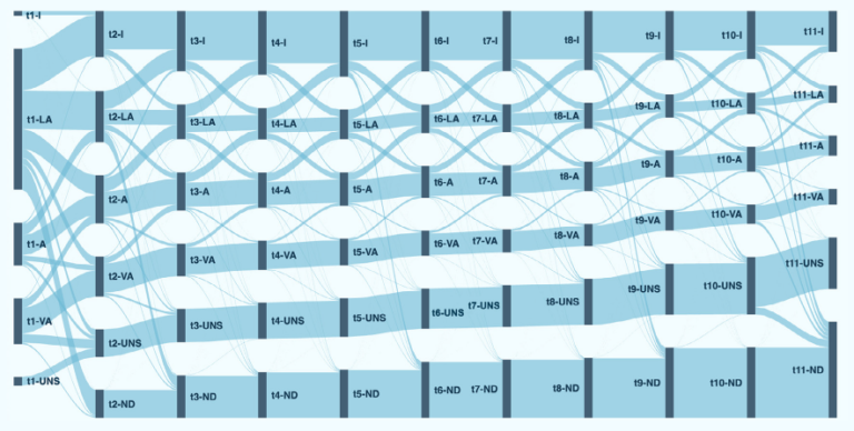 Finally, from one engagement level to another, we analyzed the transitions that users make during their life as contacts and to what extent these transitions transform the database composition over time.