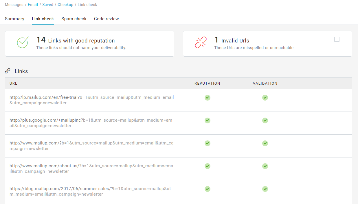 This is a valuable function to ensure that the links included in the email are intact and do not affect the performance of the campaign.