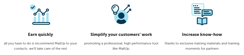 So, all a Referral Partner has to do to get their commissions is promote the platform. MailUp will take care of the rest.