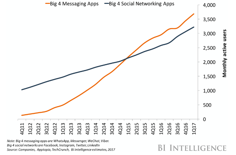Result: 2015 will be remembered as the year in which traffic on messaging platforms exceeded traffic on social networks. Today, three years later, the paths have grown even further apart.