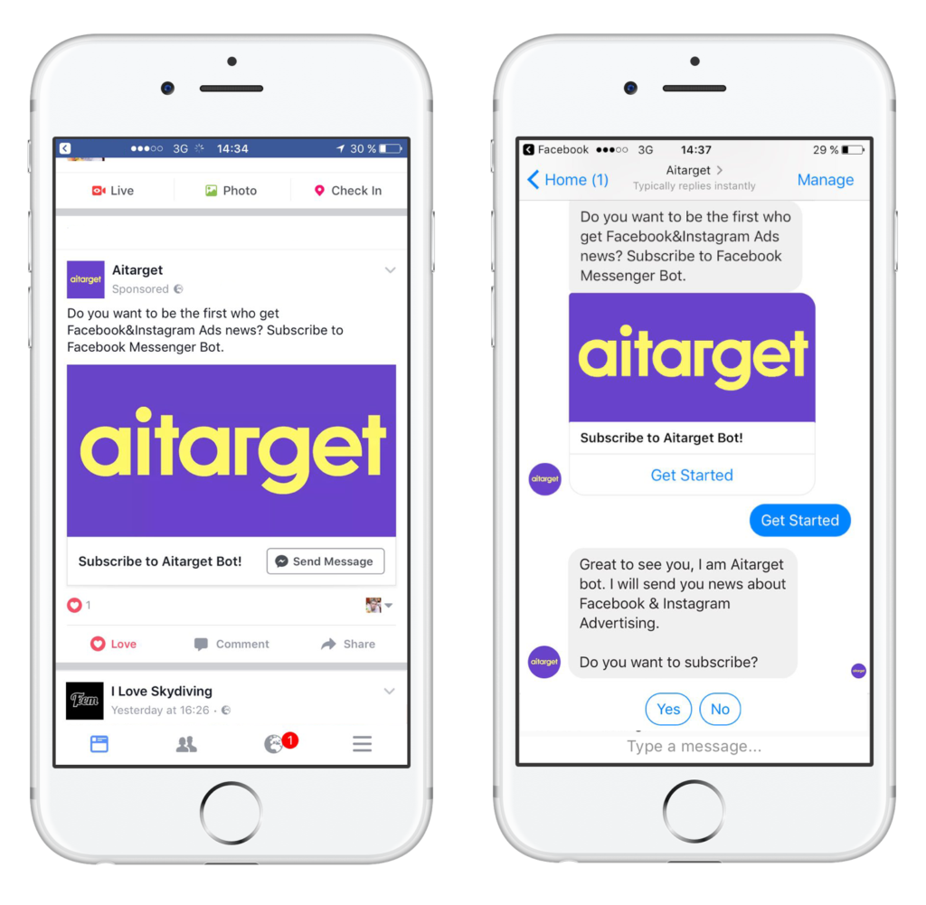 Today, brands use Messenger to send people to landing pages, product pages (generally places of the site focused on purchases), but if your purpose is database building, you can insert your ad in the Home tab of the mobile Messenger app and send potential contacts directly to the conversation page in Messenger with one click.