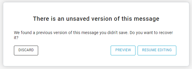 That’s why, staying on the subject of content, we have introduced email autosaving in the BEE editor. Did you accidentally close the platform? Did a blackout cut off electricity to your entire city, paralyzing you in front of the computer not for fear of the dark, but for fear of having lost hours of work on your newsletter? Starting today, BEE will immediately offer the message’s last saved version when you log in again. An alert will give you the option to resume editing the message, preview it, or ignore it.