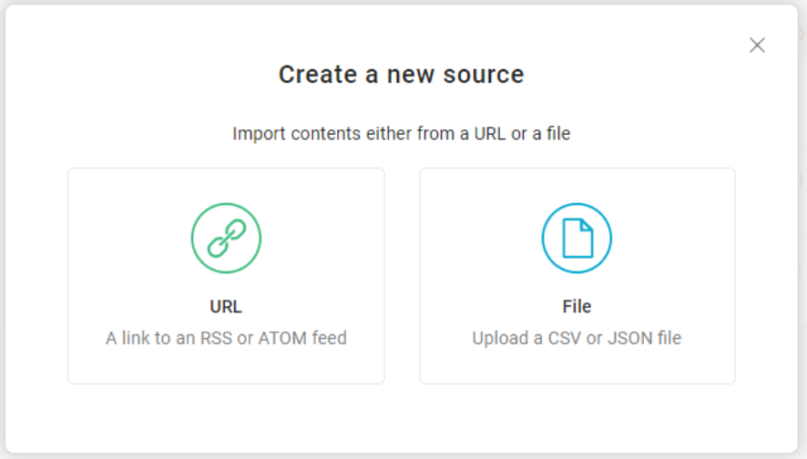 Today’s novelty concerns the first step: in fact, we have broadened the types of content sources to include files as well. Here’s the double possibility you now have on the platform: