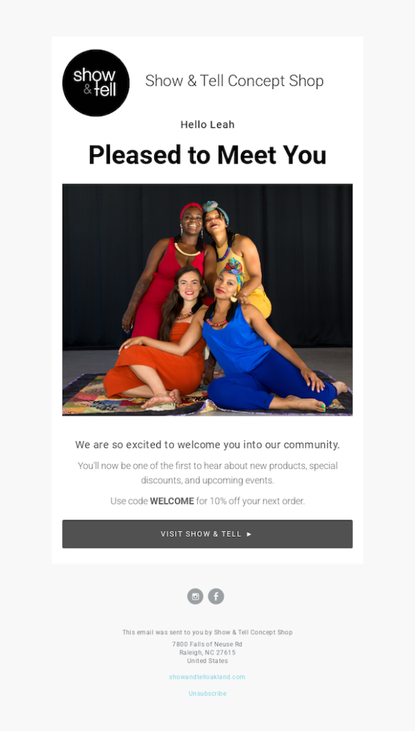 1. A welcome email by Show & Tell