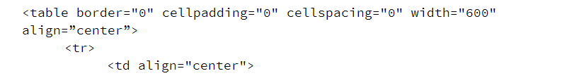 Sincewe want to center the entire email, we set align= “center” at the cell level and not the table level: havingthe latter at 100% width centers it by definition.