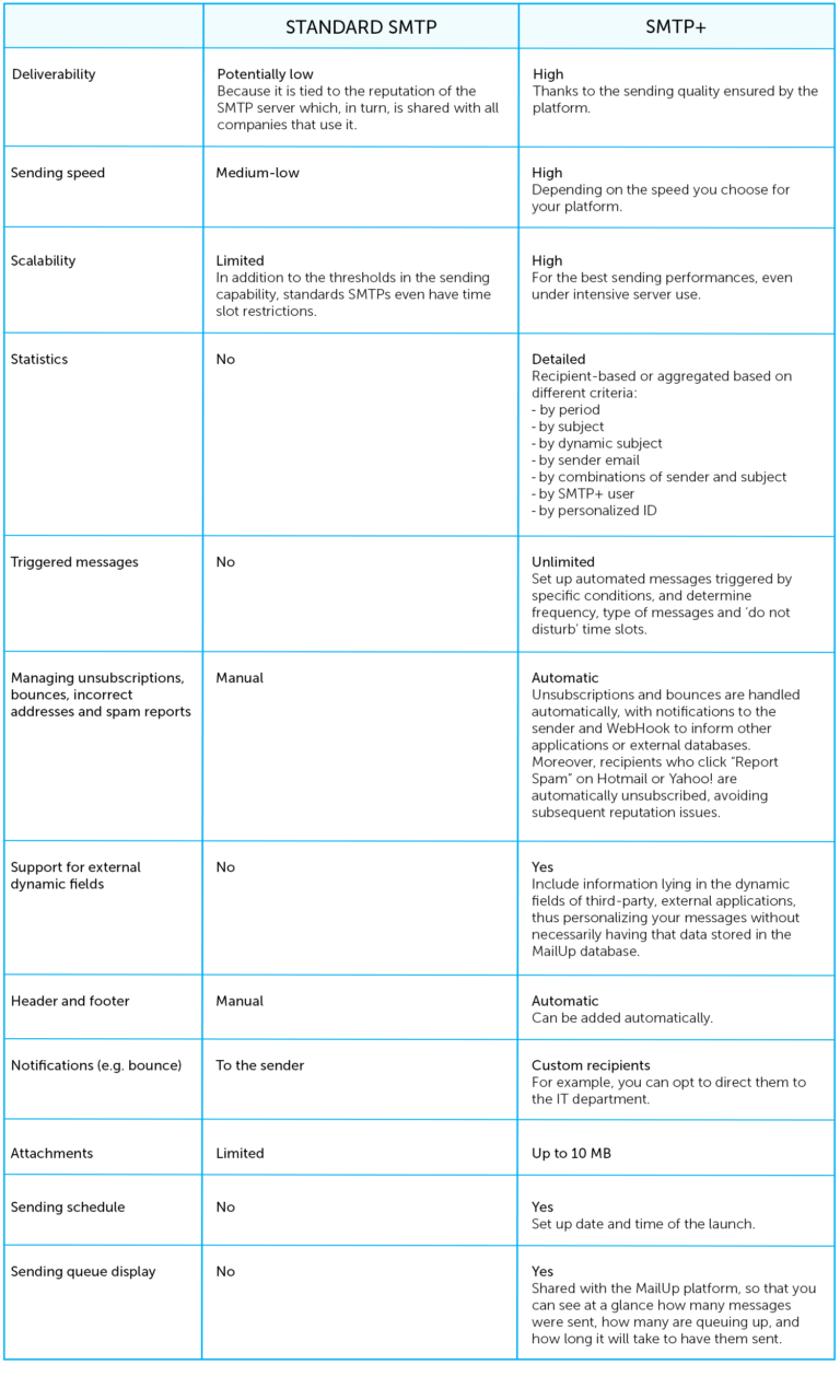 We can see the advantages of SMTP+ in real terms by comparing it with a standard SMTP server: