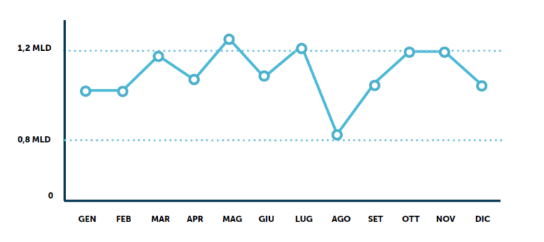 First off, it’s worth mentioning themonths in which the largest sending volumes concentrate: the month of May stands out in conjunction withthe pre-summer season. Julyfollows shortly thereafter. Then, the sendings drop dramatically: August, of course, is the month with the leastsending volumes due to summer breaks. The months of October and November also emerge in terms of volume and areaffected by some of the most important sale opportunities: Black Friday, CyberMonday, and, of course, Christmas.