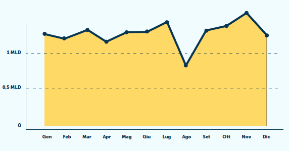 The study then focused on analysis of mailing volumes per month, to clarify how seasonal logic can affect Email Marketing strategies. In a year like 2020, this type of analysis has also served to understand whether the sending trend has been influenced and has followed the pandemic’s evolution.