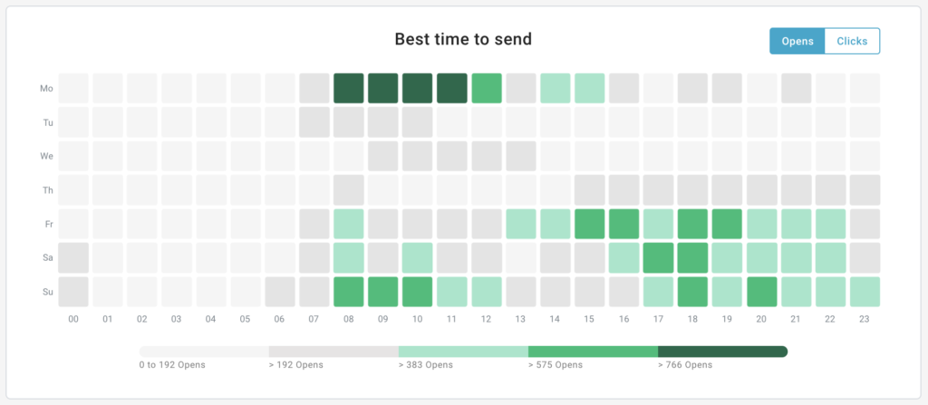 - Activity distribution, to see which days andweeks your recipients are more receptive and active.