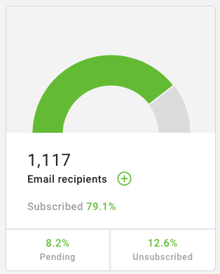 • Total recipients subscribed to thechannel and percentage of subscribed and unsubscribed recipients compared tothe total.