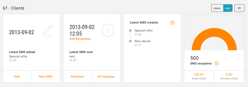 Does your company also do SMS Marketing? If you’ve modified or sent an SMS message in the last 90 days and have credits available, you’ll find an overview with: