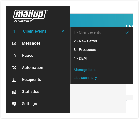 As you will have understood, thelists allow a better structuring of the recipients and the database: in fact itis like having multiple platformsin one, with the advantage of making each mailing more targeted andconsequently more performing.