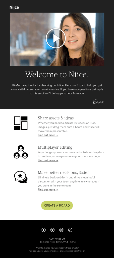 Welcome emails present the brand to the user. They’re the type of transactional email most used by companies as a tool to achieve different purposes: