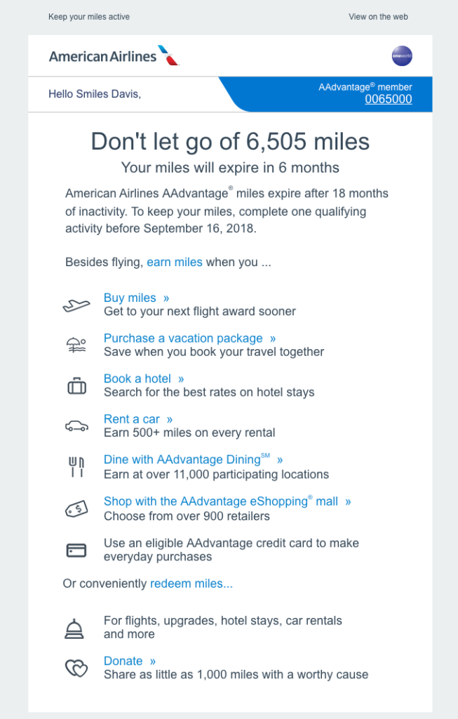 - the Travel sector can use these transactional emails with a similar logic, inviting the user not to lose the points of his account and to complete a purchase to get a discount on a future trip.