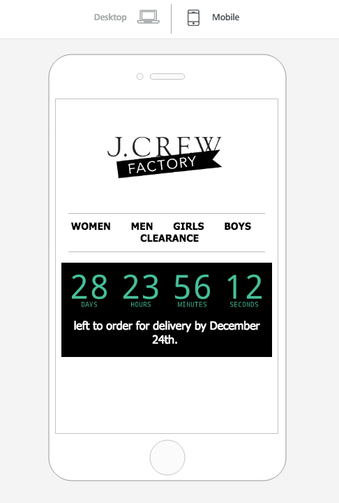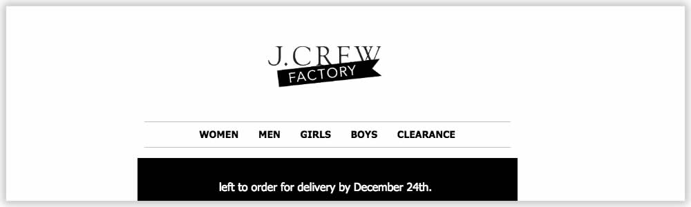 We’re going to recreate a countdown timer email from this J. Crew Factory email promoting shoppers’ last chance at holiday shipping: